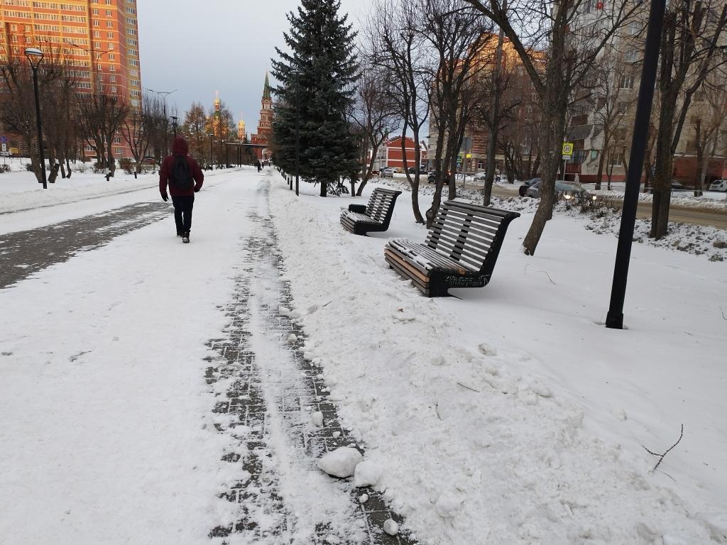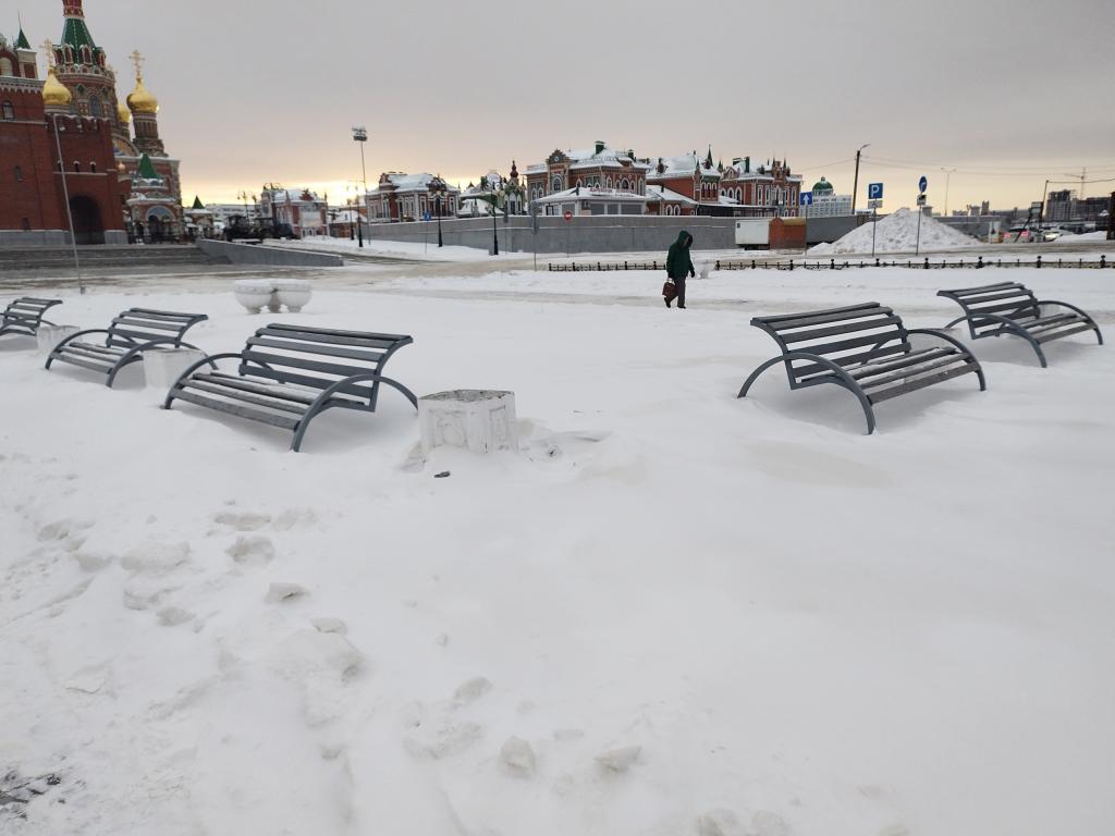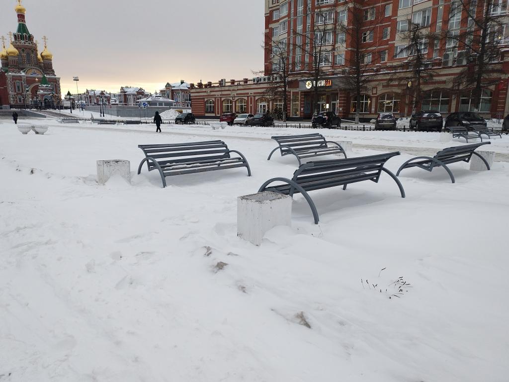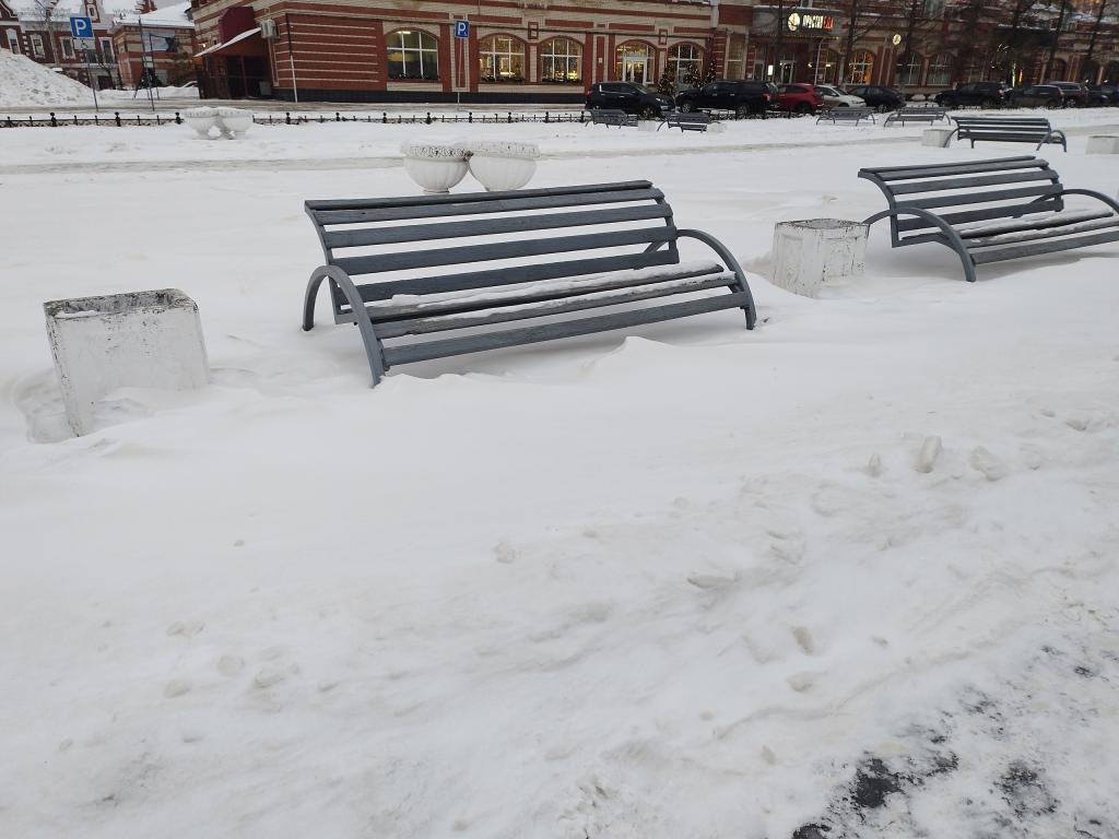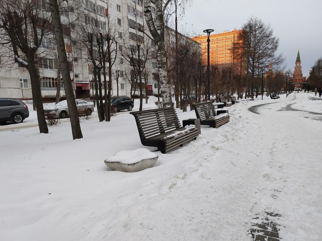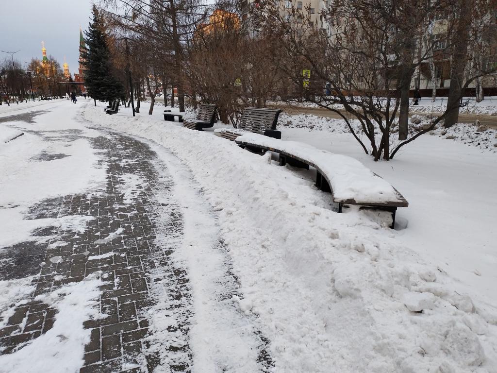 Горожане вновь обращают внимание коммунальных служб Йошкар-Олы на некачественную уборку снега на бульваре Чавайна. Коммунальные службы после снегопадов расчищают только пешеходную зону, оставляя сугробы около скамеек и лавочек.