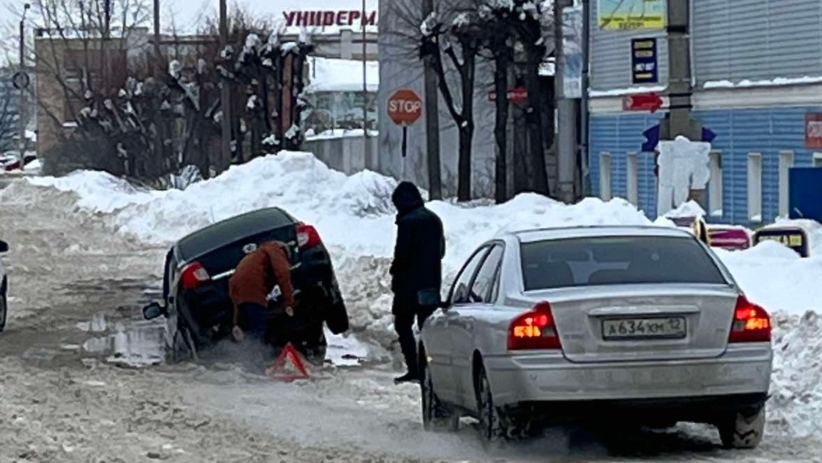В Йошкар-Оле на улице Складской под асфальт провалился автомобиль «Датсун». Горожане делятся в соцсетях фотографиями с места происшествия.