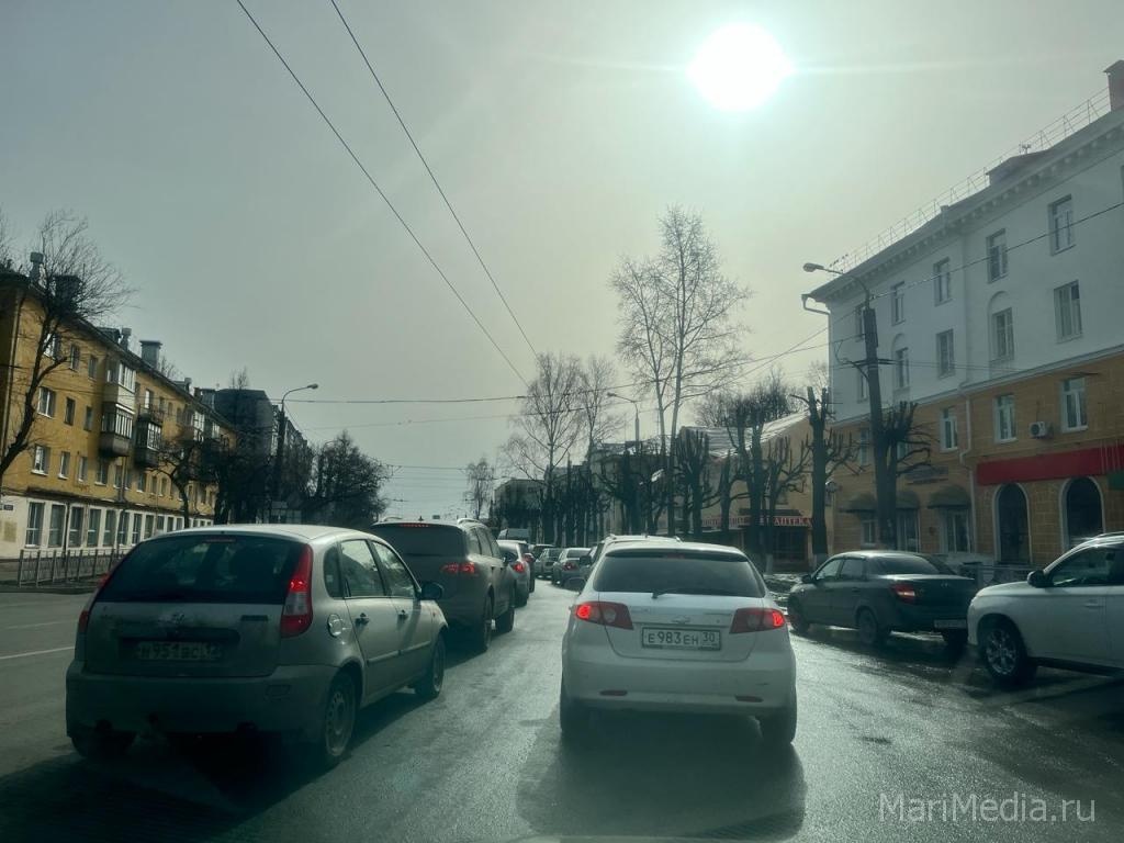 На перекрёстке Ленинского проспекта и ул. Первомайской в Йошкар-Оле образовалась пробка.