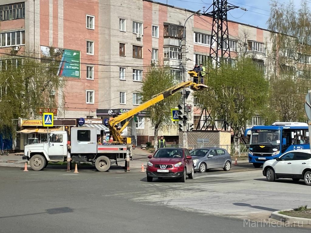 В Медведевском районе на подъезде к городу монтируют умный светофор.