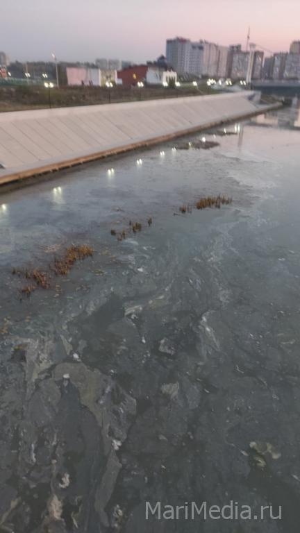 На протяжении месяца йошкаролинцы приглядываются к воде в Малой Кокшаге. Их беспокоят странные пятна на воде у берегов между Центральным мостом и Вантовым мостом. Причём у одного берега они зелёные, у другого — молочного цвета.