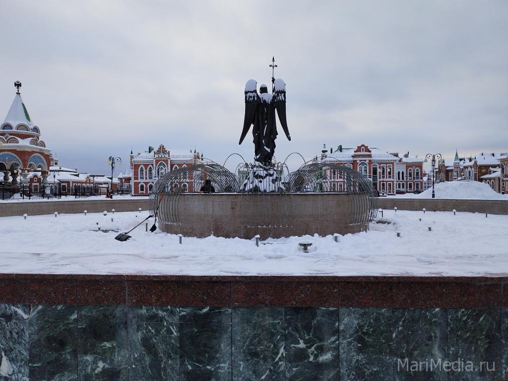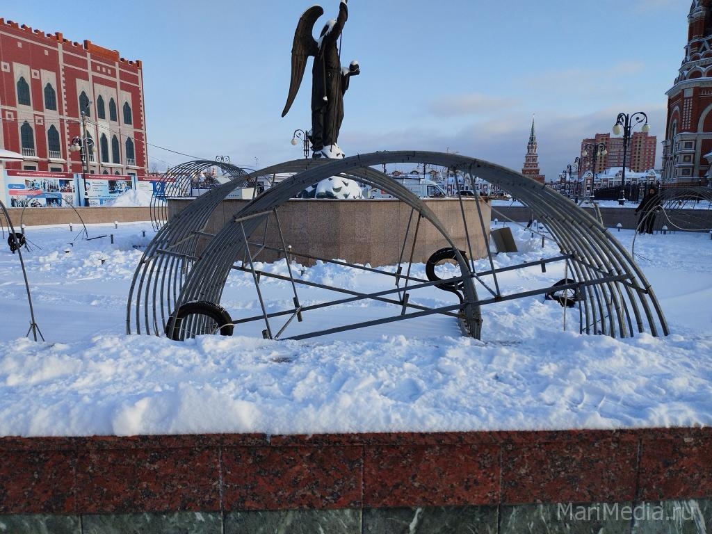 Сегодня начался монтаж светового оборудования фонтана Архангела Гавриила на площади Пресвятой Девы Марии.