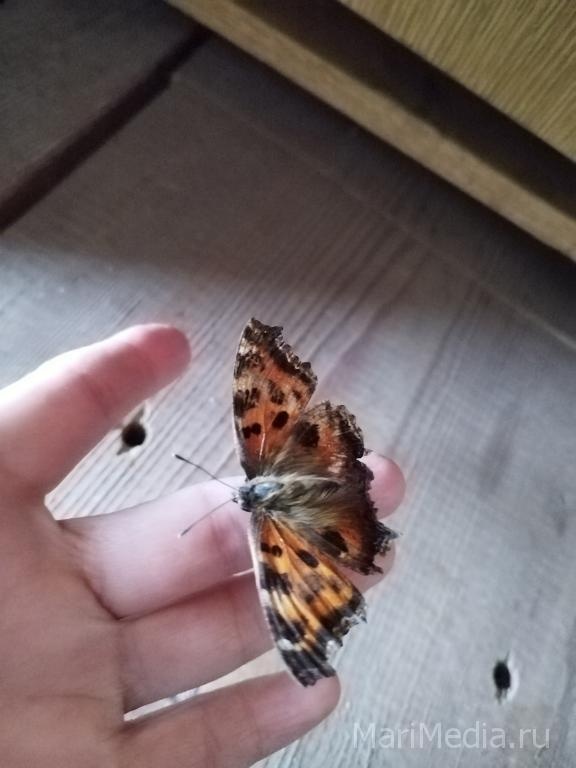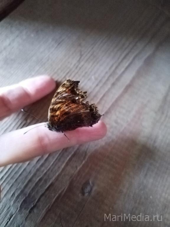 По словам очевидцев, бабочка сидела на полу на первом этаже. Сперва показалось, что она неживая, но когда её тронули, она раскрыла крылышки.