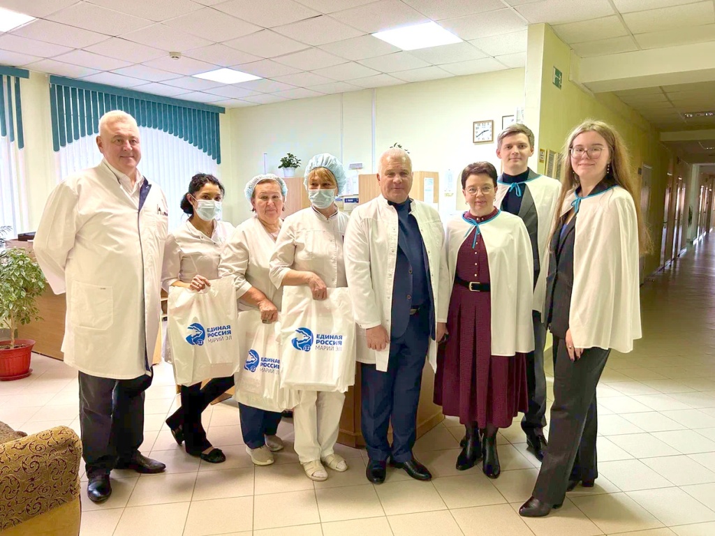 Первые подарки для юных пациентов Детской республиканской клинической больницы передали сенатор от Марий Эл Сергей Мартынов, заместитель министра здравоохранения Марий Эл Татьяна Бастракова, руководитель Регионального исполнительного комитета партии «Единая Россия» Матвей Галяутдинов, депутат Государственного собрания Мария Дорогова.