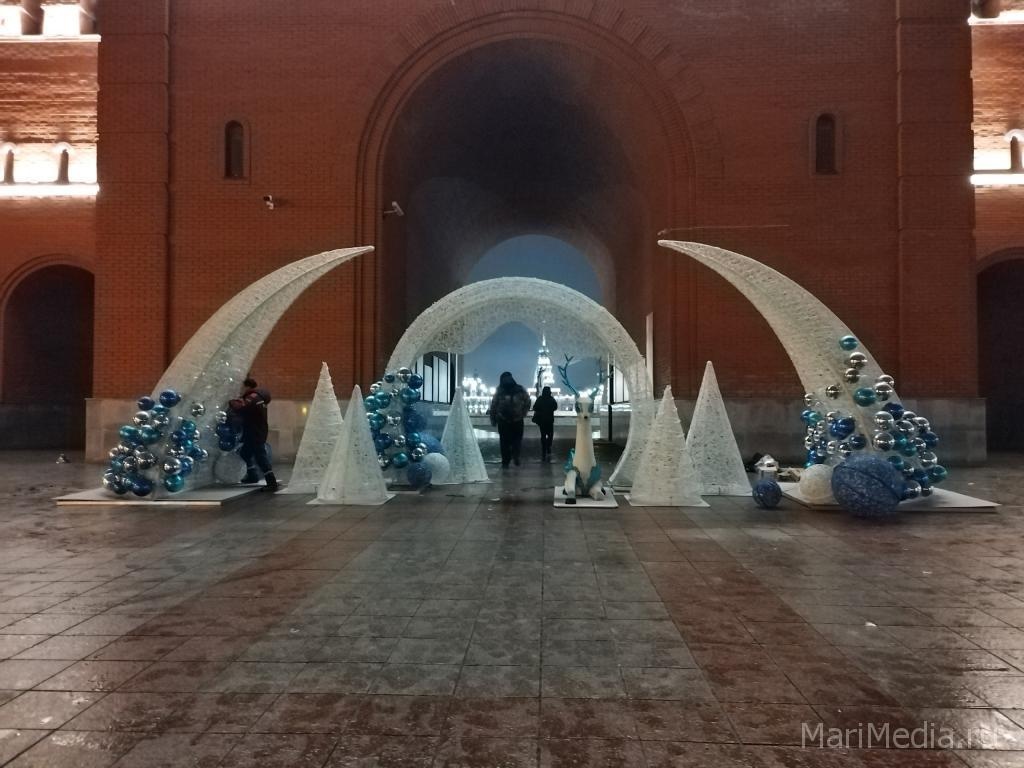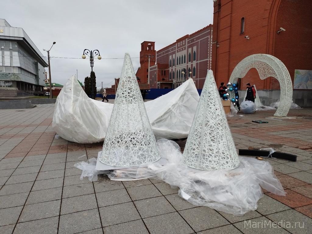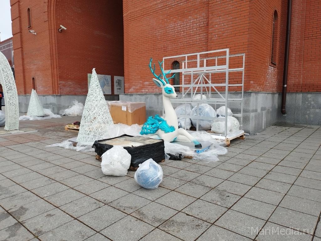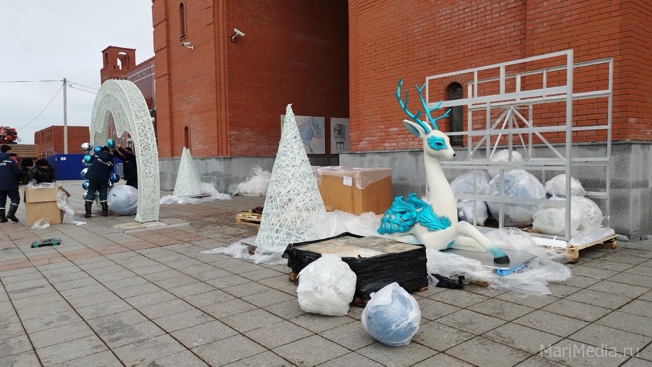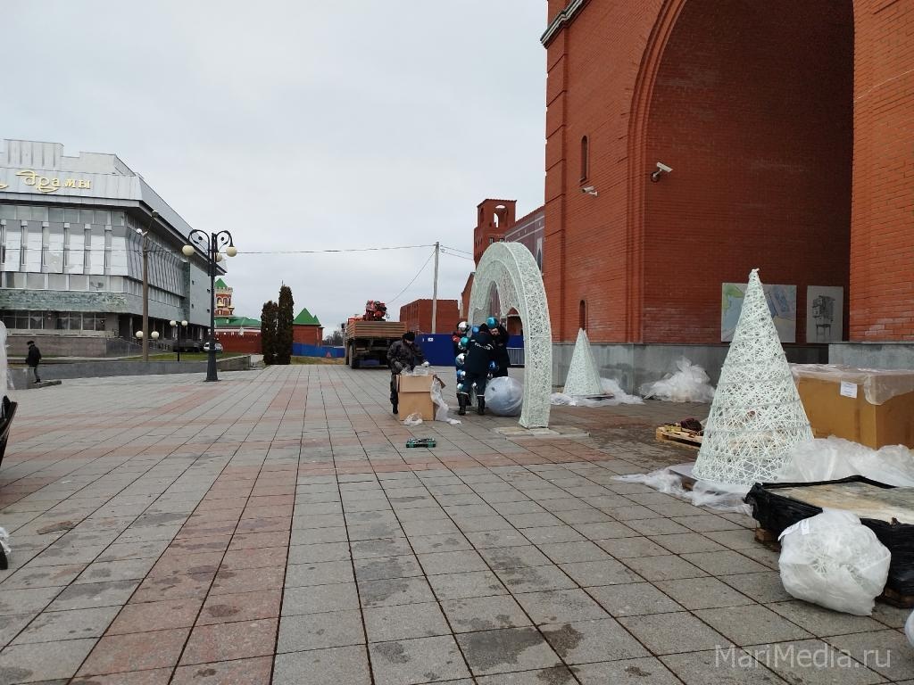 Марийская столица постепенно преображается к Новому году. По всему городу ведётся монтаж новогодней атрибутики.