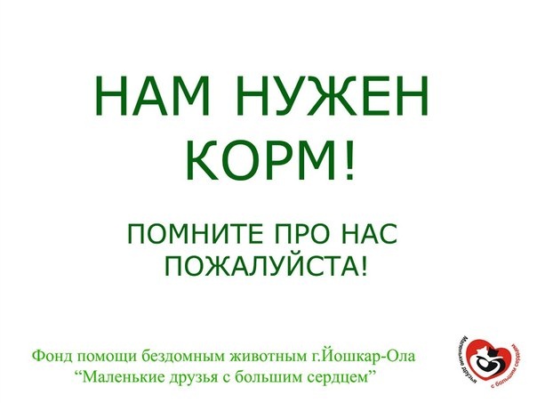 МариМедиа, 15 мая. «Пожалуйста! Помогите с оплатой за корм! Он пришел, а платить за него нечем. На передержке кошки после лечения и после стерилизации, им нужен хороший корм. Нужно сегодня заплатить 3700 рублей», — сегодня с такой просьбой в своей официальной группе «ВКонтакте» обратились волонтеры городского Фонда помощи бездомным животным к неравнодушным йошкаролинцам.