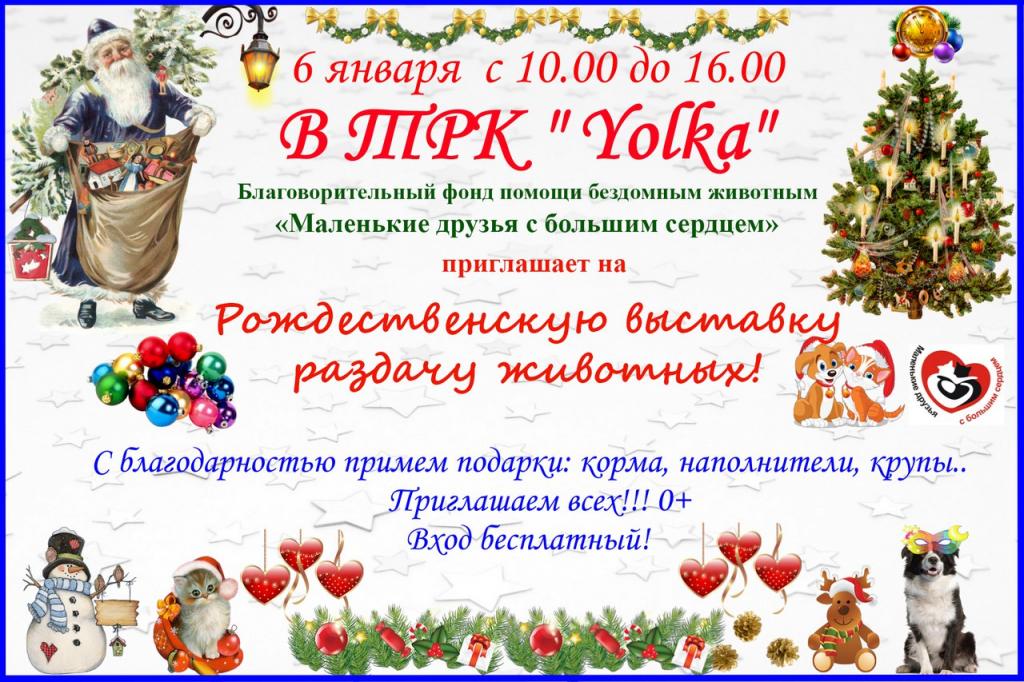 Выставка раздача состоится 6 января с 10:00 до 16:00 в ТРК «Ёлка», по адресу ул. Кирова, 6.