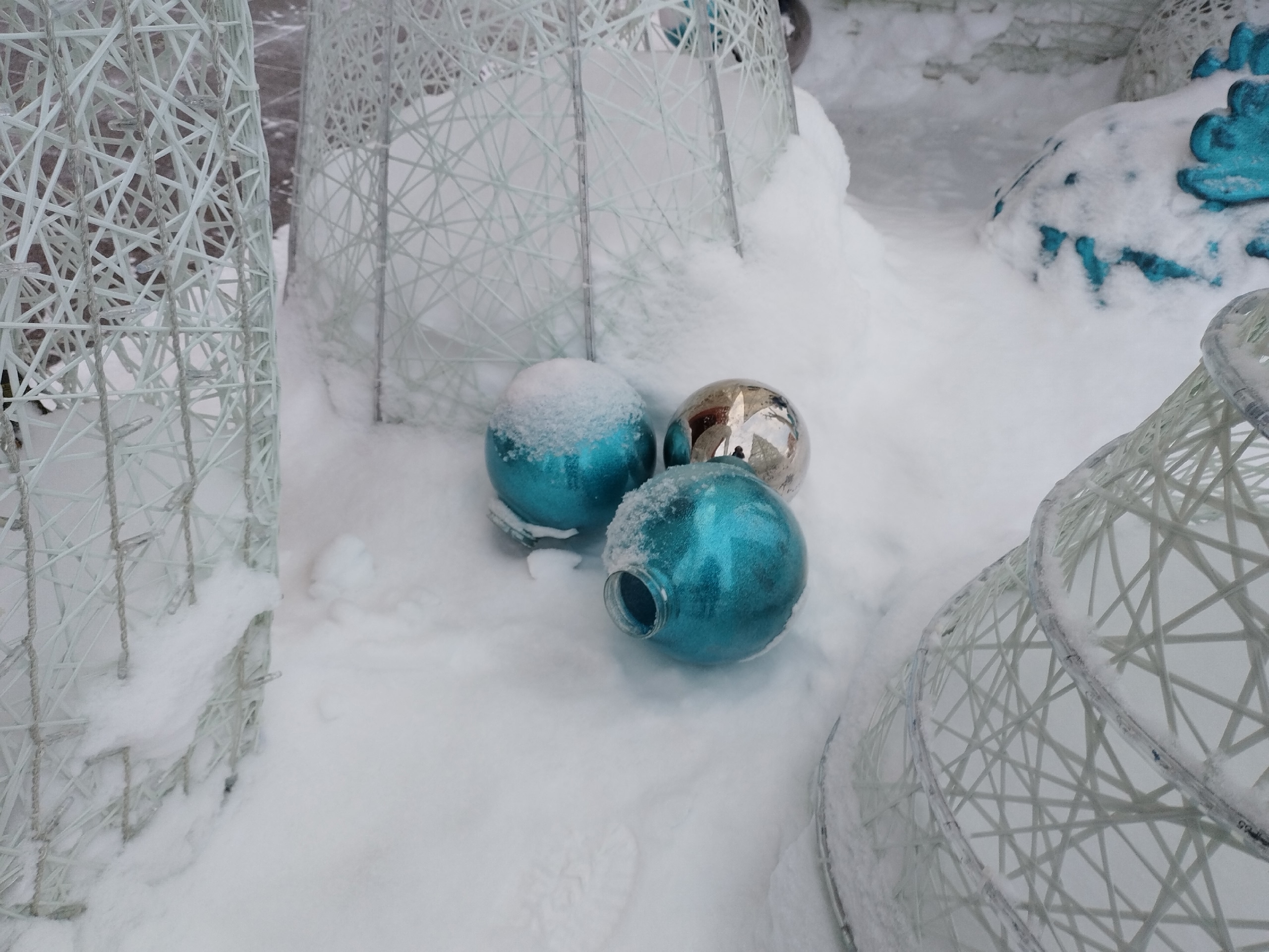 Убедительная просьба к установщикам этой композиции: забрать оторванные шары, чтобы была возможность восстановить первоначальный вид новогодней инсталляции.