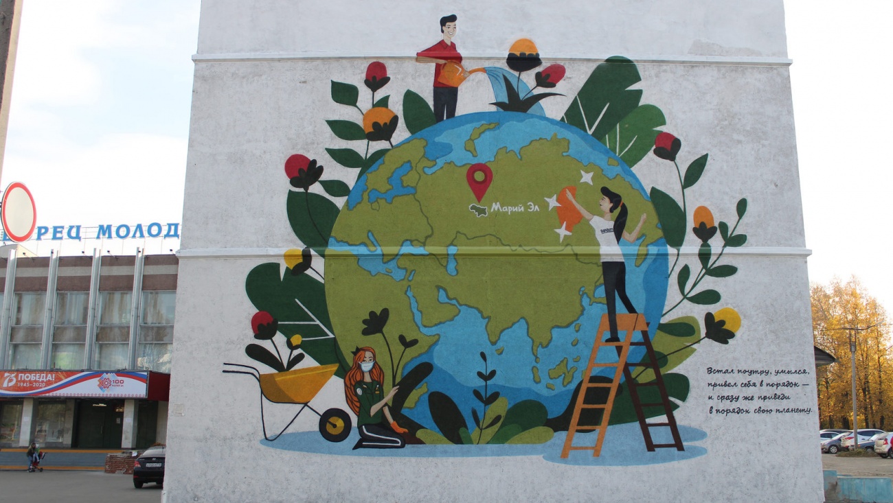 Символично, что данное изображение нанесено на здании Ресурсного центра поддержки добровольчества и волонтерства ГБУ Республики Марий Эл «Дворец молодежи Республики Марий Эл», который стал центральным координатором волонтерской взаимопомощи на территории Республики Марий Эл.
