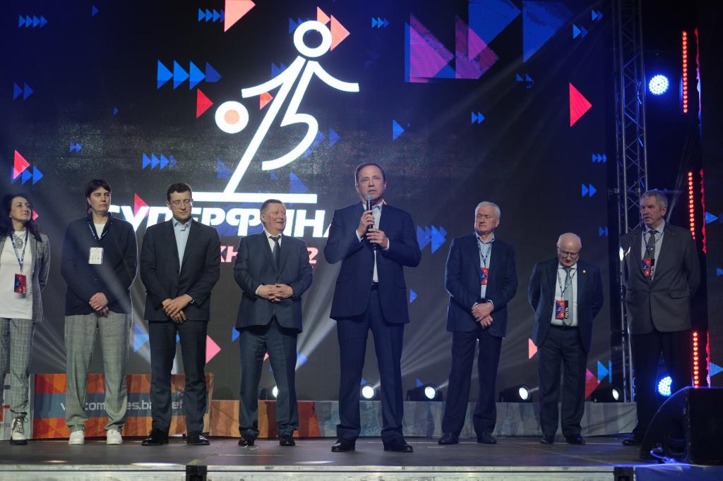 В минувшие выходные в Нижнем Новгороде полпред ПФО Игорь Комаров посетил финальные матчи пятнадцатого, юбилейного суперфинала чемпионата школьной баскетбольной лиги «КЭС-БАСКЕТ». На мероприятии присутствовали заслуженный тренер РСФСР, заслуженный тренер СССР женских баскетбольных команд Евгений Гомельский, президент ШБЛ «КЭС-БАСКЕТ» Алексей Фролов, заслуженные баскетболисты России, олимпийские чемпионы, победители и призёры чемпионатов мира и Европы.