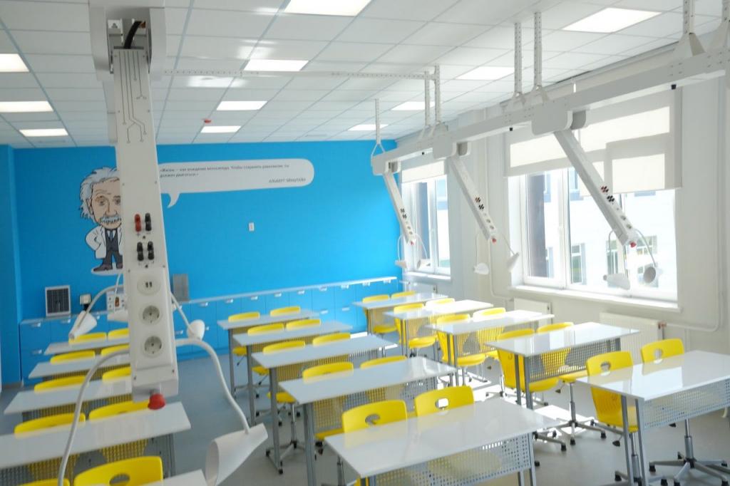 Здание соответствует всем современным требованиям. У школы есть 45 учебных классов, библиотека с читальным залом, планетарий, столовая, актовый зал, мастерские, а также физкультурно-оздоровительный комплекс с тренажерным, хореографическим залами и бассейном. В комплексе будут заниматься ребята с 5 по 11 классы, а это 1000 человек.