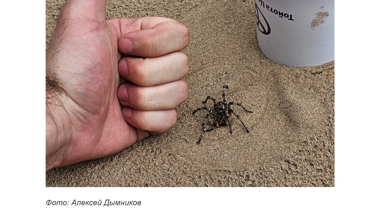 Как выяснилось позже, мохнатым гостем оказался редкий краснокнижный экземпляр — южнорусский тарантул, или как его ещё называют, паук-мизгирь. О встрече на берегу узнали телевизионщики.