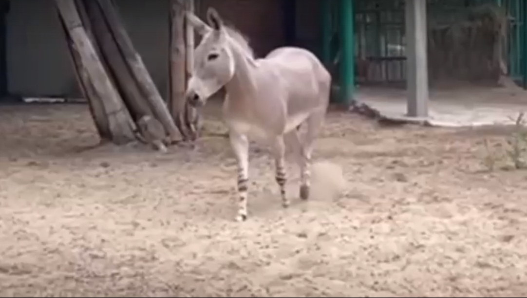Жители Казани и гости города знакомятся с новым обитателем Казанского зооботсада. Администрация «Река Замбези» приобрела нового питомца, уникального по расцветке сомалийского дикого осла.