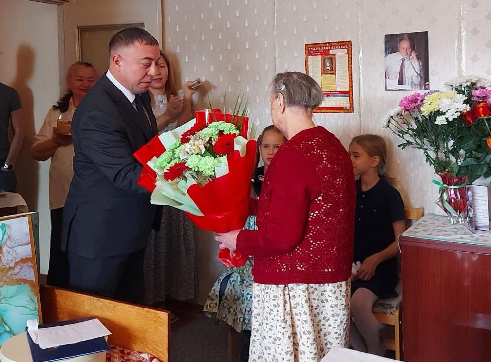 Юбилярша живёт в Уфе. Глава администрации Советского района Уфы Айдар Базгудинов поздравил жительницу города и её семью с таким значимым событием.