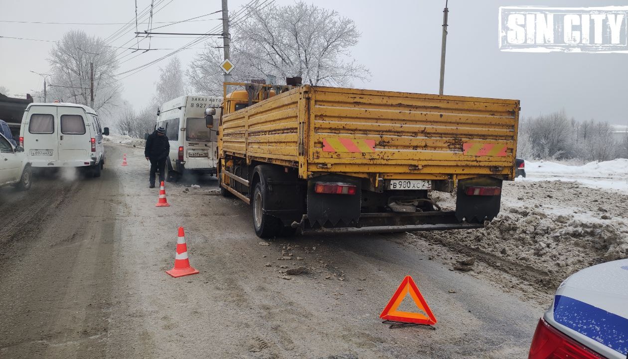 По предварительным данным, водитель «КамАЗа» не справился с управлением и врезался в пассажирский микроавтобус, который ехал впереди. От удара маршрутка по инерции влетела в кроссовер Haval, который следовал перед ней.