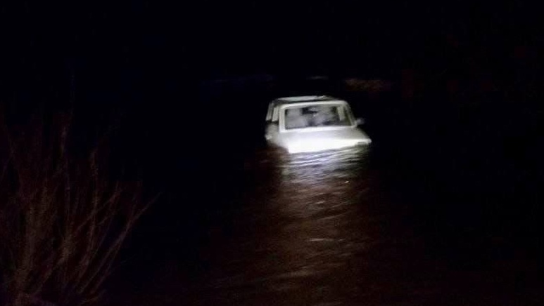 Машина почти полностью ушла под воду. Водитель и пассажиры успели забраться на крышу.