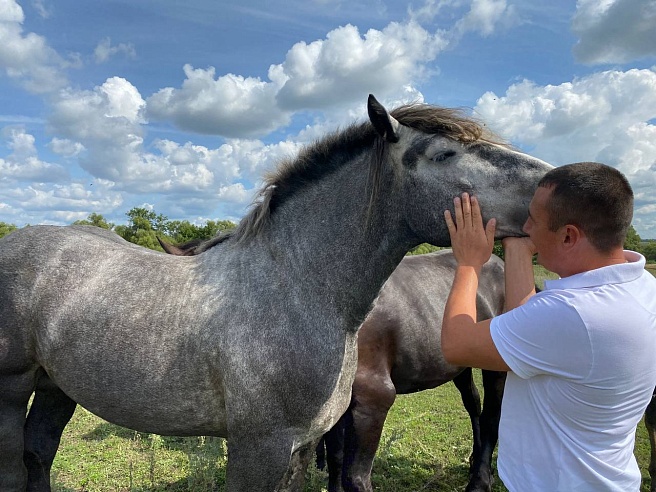 Фермер занимается разведением лошадей семь лет. В его табуне разные породы: русские, советские и бельгийские тяжеловозы.