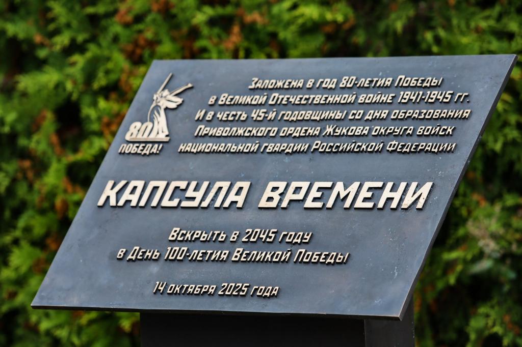 Завершились торжества церемонией закладки капсулы времени у мемориального комплекса «Военнослужащим и сотрудникам, погибшим при исполнении воинского и служебного долга». Капсула с посланием к потомкам будет вскрыта в 2045 году к 100-летию Победы в Великой Отечественной войне. Почётное право поместить капсулу в хранилище предоставили офицеру казанского отряда специального назначения Герою России майору Андрею Филоненко.