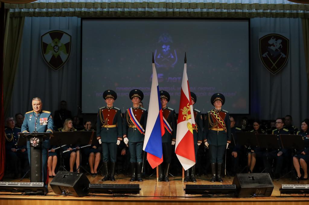 На торжественном собрании была зачитана поздравительная телеграмма от директора Росгвардии Героя России генерала армии Виктора Золотова. В своём поздравлении глава ведомства отметил, что военнослужащие и сотрудники Приволжского округа честно и мужественно несут службу в одном из ключевых регионов страны, являют собой надёжный щит государства в борьбе с террористическими и экстремистскими угрозами, стоят на страже тишины и спокойствия граждан.