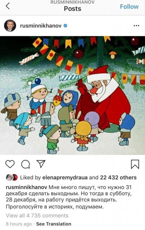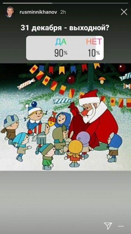 Президент Республики Татарстан Рустам Минниханов провёл у себя в **** опрос, делать ли 31 декабря выходным днём.