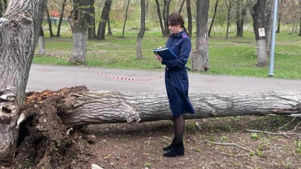 Происшествие произошло сегодня в Самаре. Из-за ураганного ветра дерево рухнуло на тротуар, где в это время проходили два подростка.