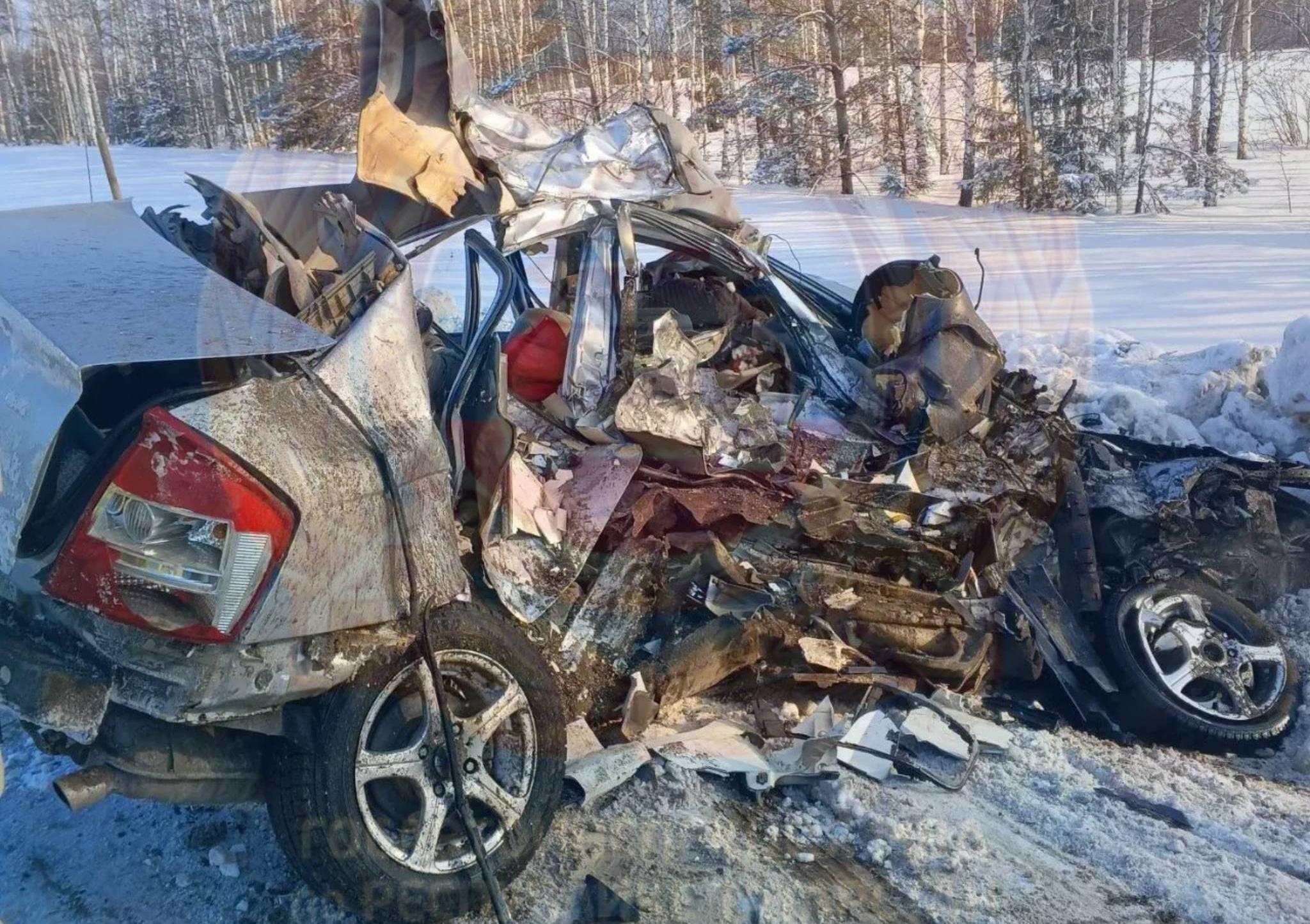 В жутком лобовом столкновении легковушки с грузовиком погибли три человека.