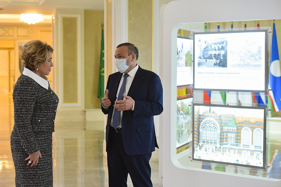 Александр Евстифеев тепло поприветствовал Валентину Матвиенко на значимом для республики мероприятии и рассказал о главной концепции выставки.