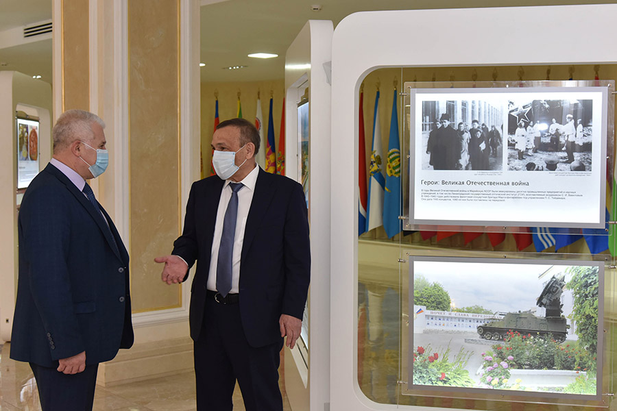 Глава Марий Эл представил фотографии военных лет, рассказал о промышленном комплексе республики, развитии сельского хозяйства.
