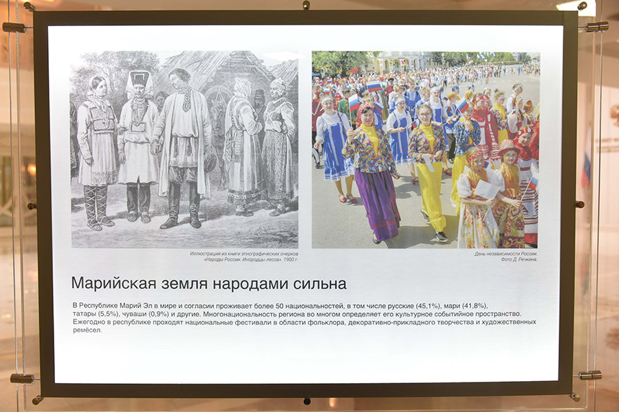 На представленных фотографиях через призму исторических событий и национальных традиций был передан образ марийского народа, его быт, самобытная культура, характер и этнические особенности. Фотовыставка состоит из трех основных блоков, представленных страницами истории Марийского края. Каждая тема раскрывается через уникальные архивные и музейные фото- и документальные материалы в сочетании с емким описанием знаковых событий, биографической справкой или общей информацией. Современная жизнь Республики Марий Эл отражена тематическими фотосюжетами — национальными праздниками и обрядами, известными достопримечательностями территории, национальными брендами. Акцент в фотовыставке сделан на динамичном развитии региона, сохранении народных традиций и, одновременно, поиске актуальных решений в современном мире.