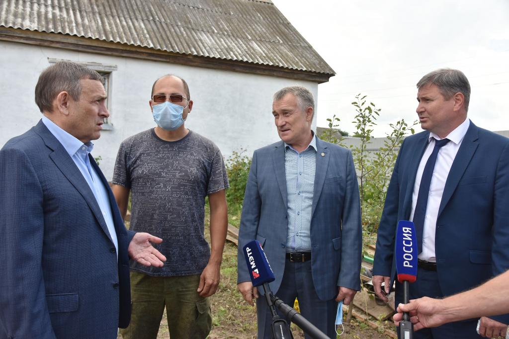 В результате разбушевавшейся стихии снесена крыша дома многодетной семьи. Хозяин Михаил Кугергин рассказал главе региона, что у него пятеро детей, и сейчас вся семья вынуждена жить на съёмной квартире.