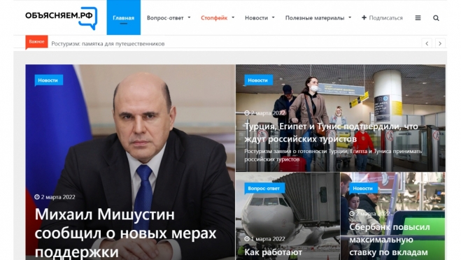 Вице-премьер Дмитрий Чернышенко объявил о запуске сайта объясняем.рф. На сайте Правительство РФ даст понятные ответы на самые актуальные вопросы россиян. Сайт будет работать по аналогии с сайтом стопкоронавирус.рф.