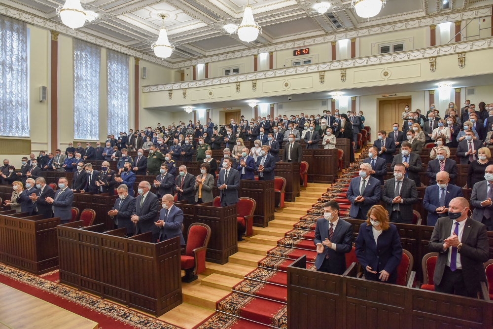 Когда Александр Александрович закончил своё обращение, зал встал. Политика провожали долгими аплодисментами.