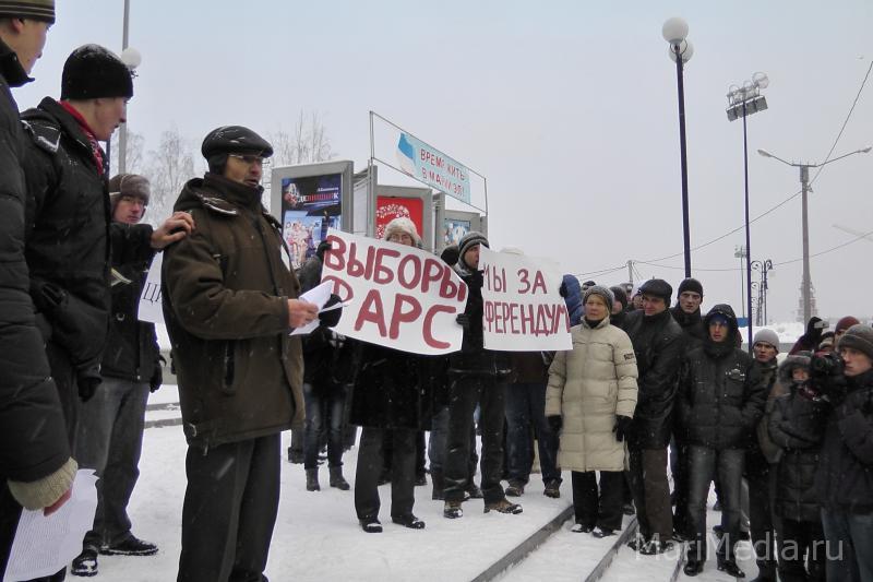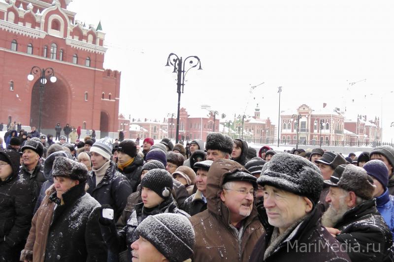 Несмотря на холодную погоду и сильный пронизывающий ветер, около 400 человек собралось на площади им. Никонова в Йошкар-Оле. Организаторы перед началом обратились с просьбой к выступающим соблюдать порядок. Митинг начался речью: "Здравствуйте сограждане! Именно такое обращение, считаю наиболее подходящим, потому вы здесь и сейчас выражаете свою гражданскую позицию. Это значит, что для вас обладание паспортом гражданина Российской Федерации не теряется в повседневной суете, что вы понимаете, что государство должно зависеть от народа, а не наоборот. Сегодня тем, что мы здесь собрались, мы показали власти, что народ не просто загнать за флажки, как зверей и заставить молчать. Мы собрались не для того, чтобы совершить бунт или революцию, нет, для того нужно быть толпой, а мы не толпа. У нас есть цель. В рамках этой цели, мы и будем действовать! Мы готовы бороться за наше светлое будущее! Мы готовы опровергнуть результаты выборов! "