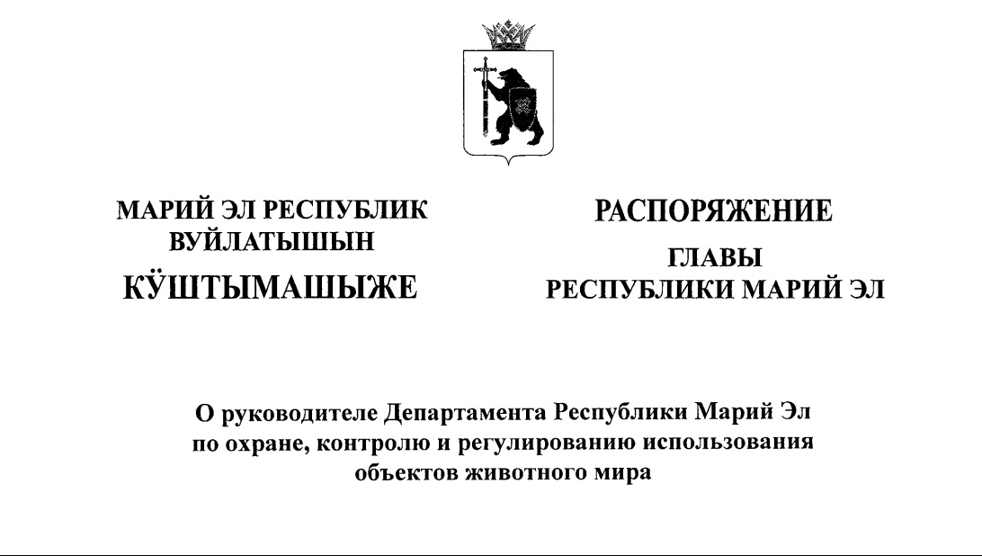 На основании Распоряжения № 331, подписанного главой Марий Эл Юрием Зайцевым, с 21 декабря 2022 года Департамент по охране, контролю и регулированию использования объектов животного мира возглавил Николай Щурков, без конкурсного отбора с испытательным сроком 3 месяца.