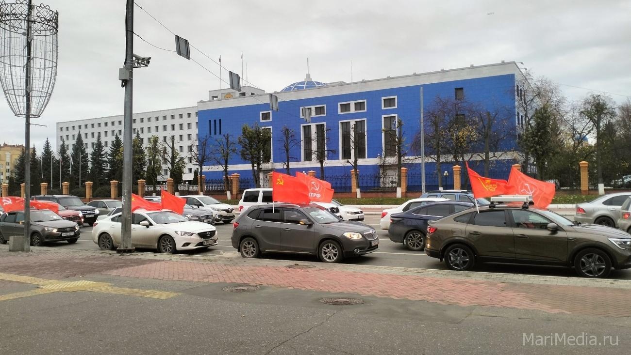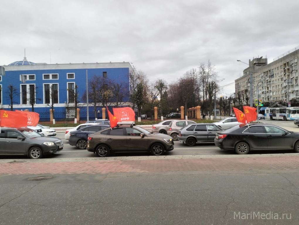 Сегодня по инициативе КПРФ по улицам марийской столицы прошёл автопробег, посвящённый Дню рождения комсомола. Традиционно машины были украшены кумачовыми флагами.