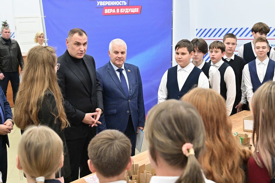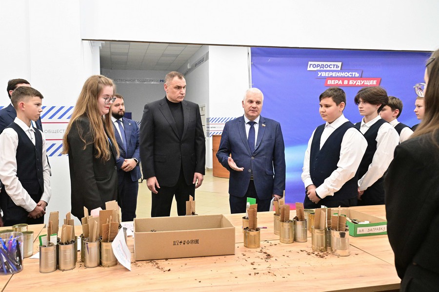 Кроме того, Юрий Зайцев и Сергей Мартынов встретились в Штабе общественной поддержки со школьниками, которые изготовили окопные свечи для бойцов.