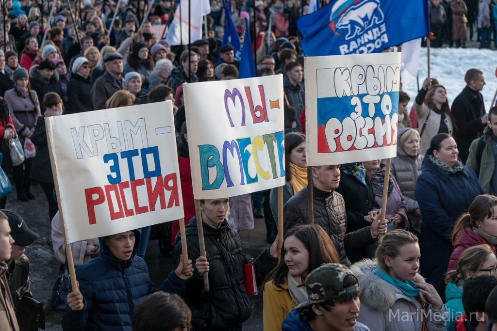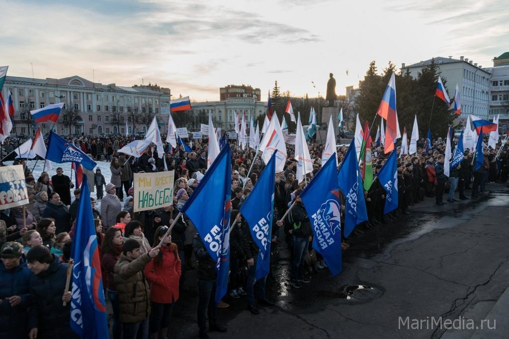 МариМедиа, 19 марта. Более 3 тысяч горожан приняли участие в праздничных мероприятиях в столице республики, посвящённых воссоединению Республики Крым и города Севастополя с Россией.