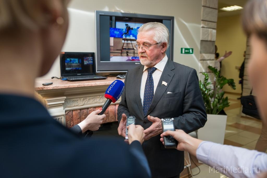 Здесь же — в здании ГТРК «Марий Эл» — прямо в большой обновленной студии прошло выездное заседание Президиума Государственного Собрания РМЭ. На закрытии Дня депутата выступил Председатель Государственного Собрания Республики Юрий Минакова. По завершении Президиума Юрий Александрович пообщался с прессой: