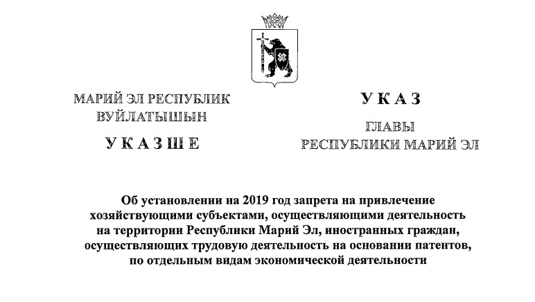 В Марий Эл с 1 января 2019 года иностранным гражданам запретят работать в некоторых сферах торговли. Соответствующий Указ подписал во вторник, 11 декабря, Глава Марий Эл Александр Евстифеев. Граждане других государств, работающие по патенту, не смогут работать в следующих областях: