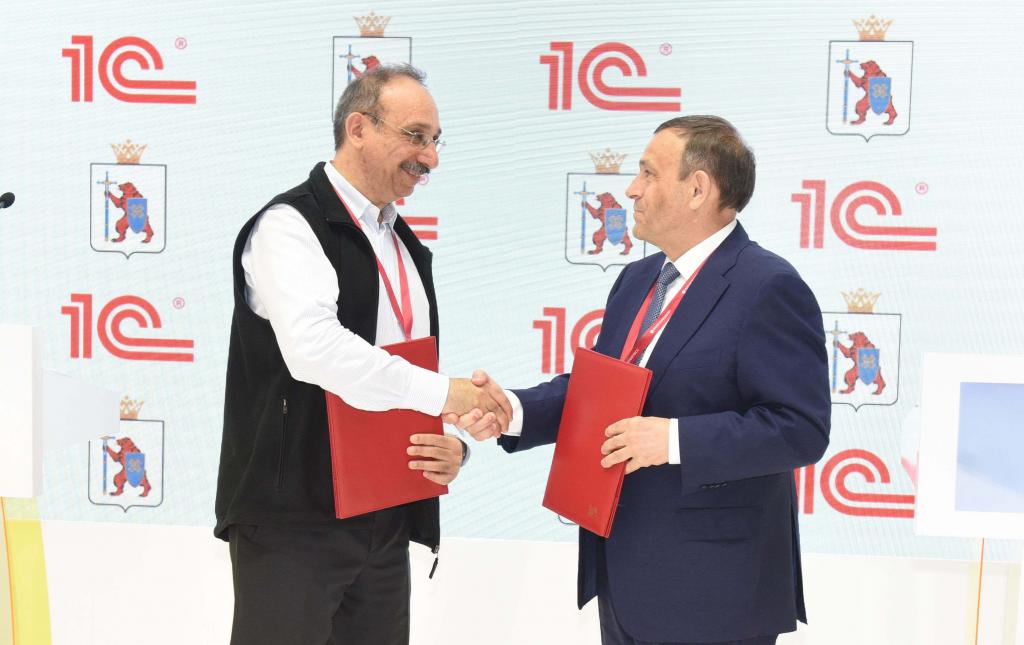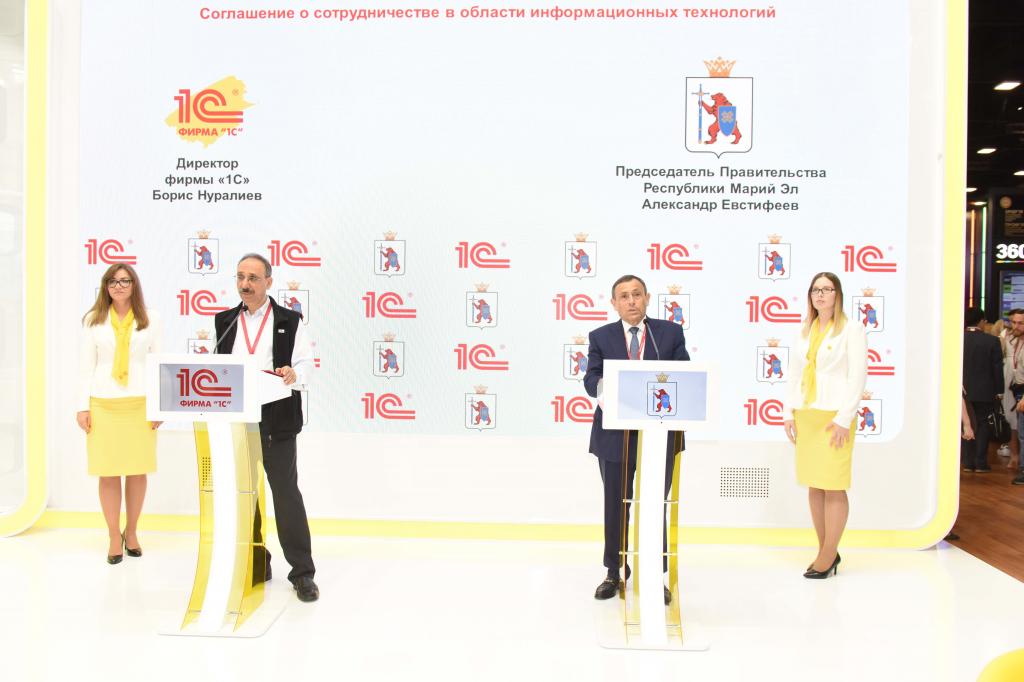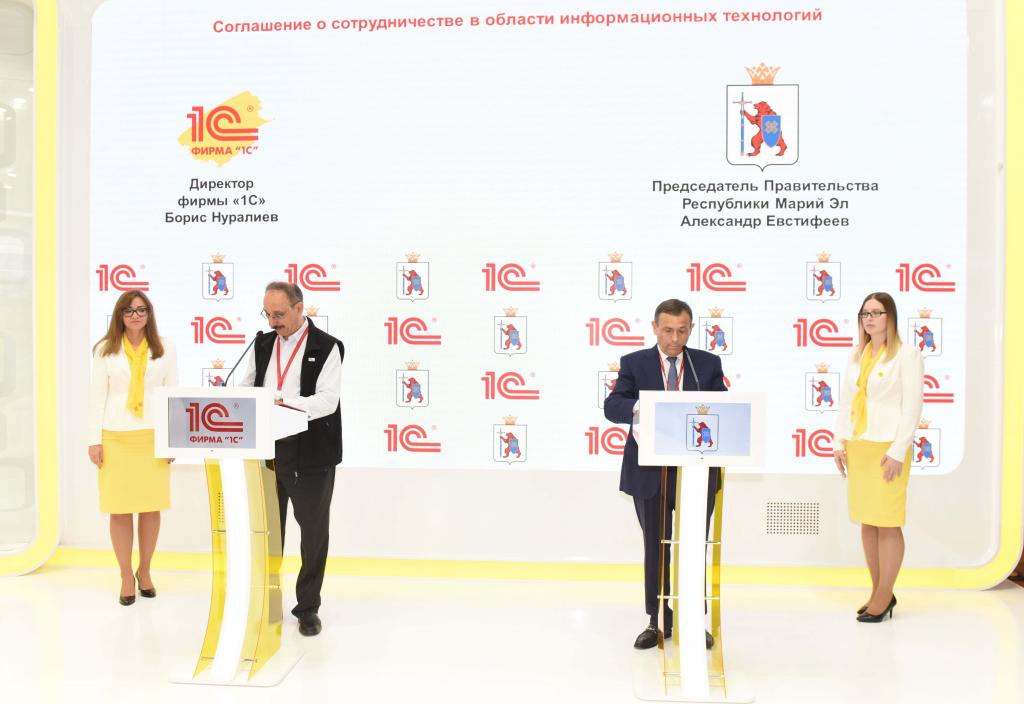 Сегодня состоялось подписание соглашения о сотрудничестве в области информационных технологий между Главой Марий Эл и директором компании «1С» Борисом Нуралиевым.