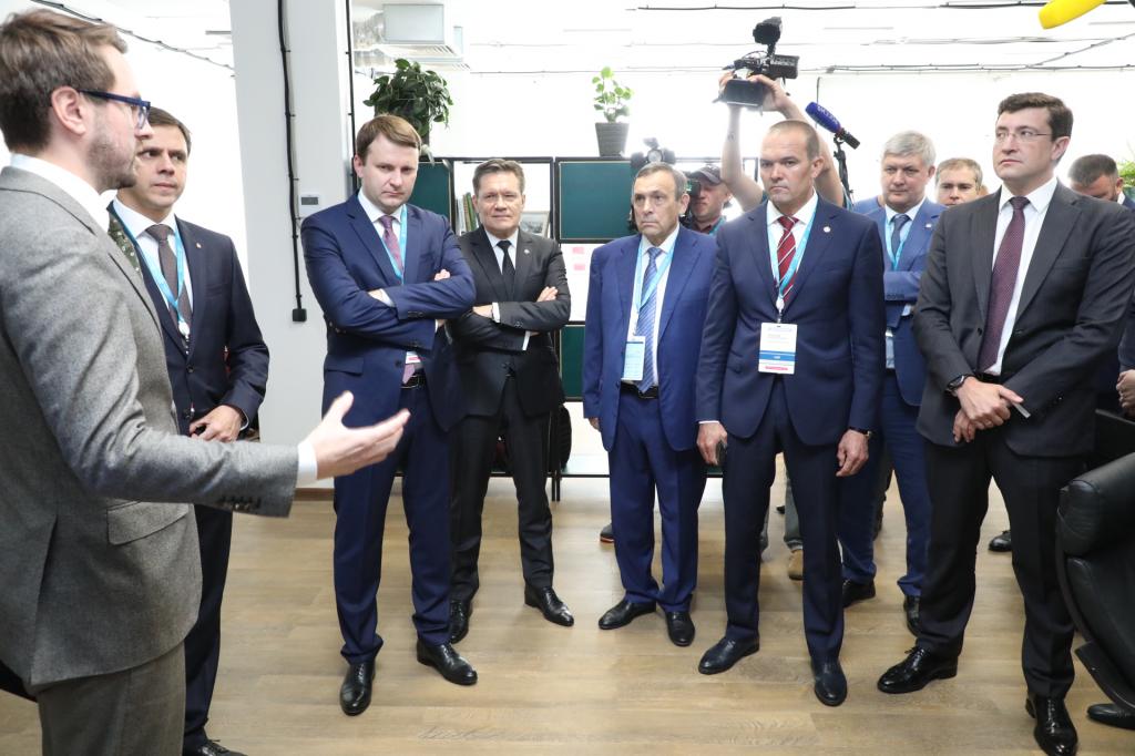 Один из первых осмотренных объектов — Проектный офис стратегии развития Нижегородской области (Проект «Эффективный регион»). Также Александр Евстифеев ознакомился с производственной деятельностью предприятия «Гринатом», где роботизировали ряд производственных процессов. Например, современные технологии применены в HR-направлении: специальная функция оптического распознавания роботом документов частично применяется при подборе персонала.