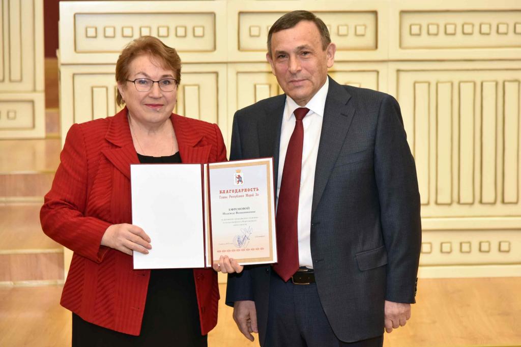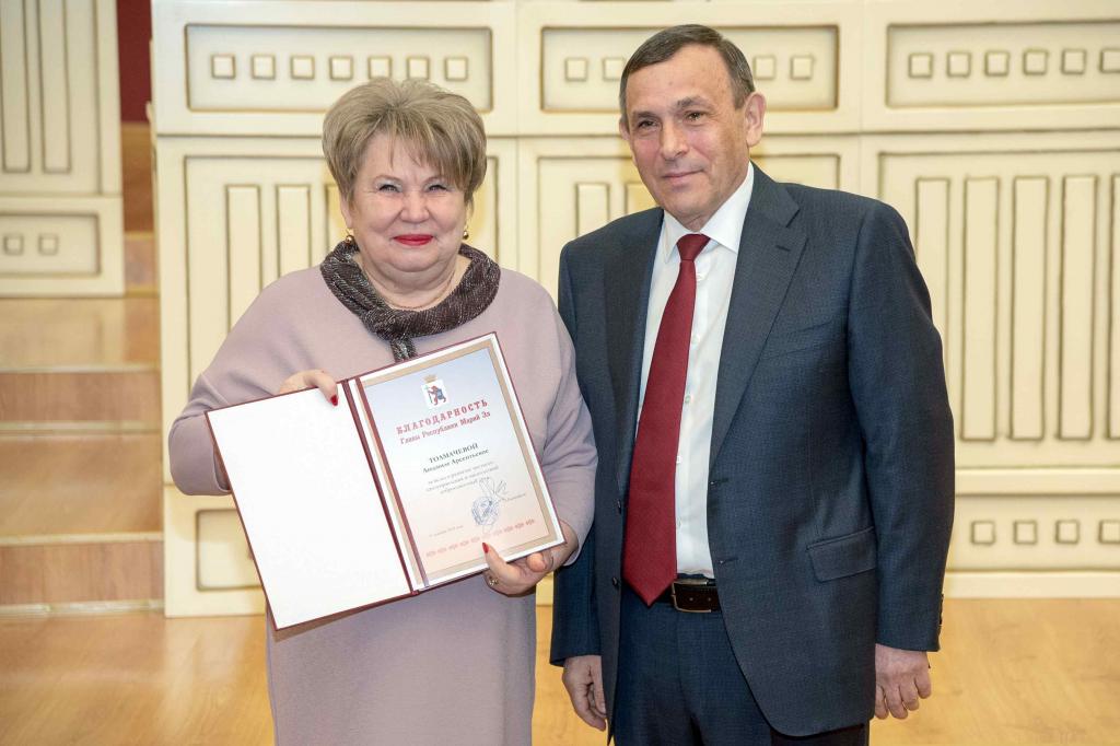 Руководитель Администрации главы Республики Марий Эл поблагодарила коллег за добросовестный труд и преданность делу.