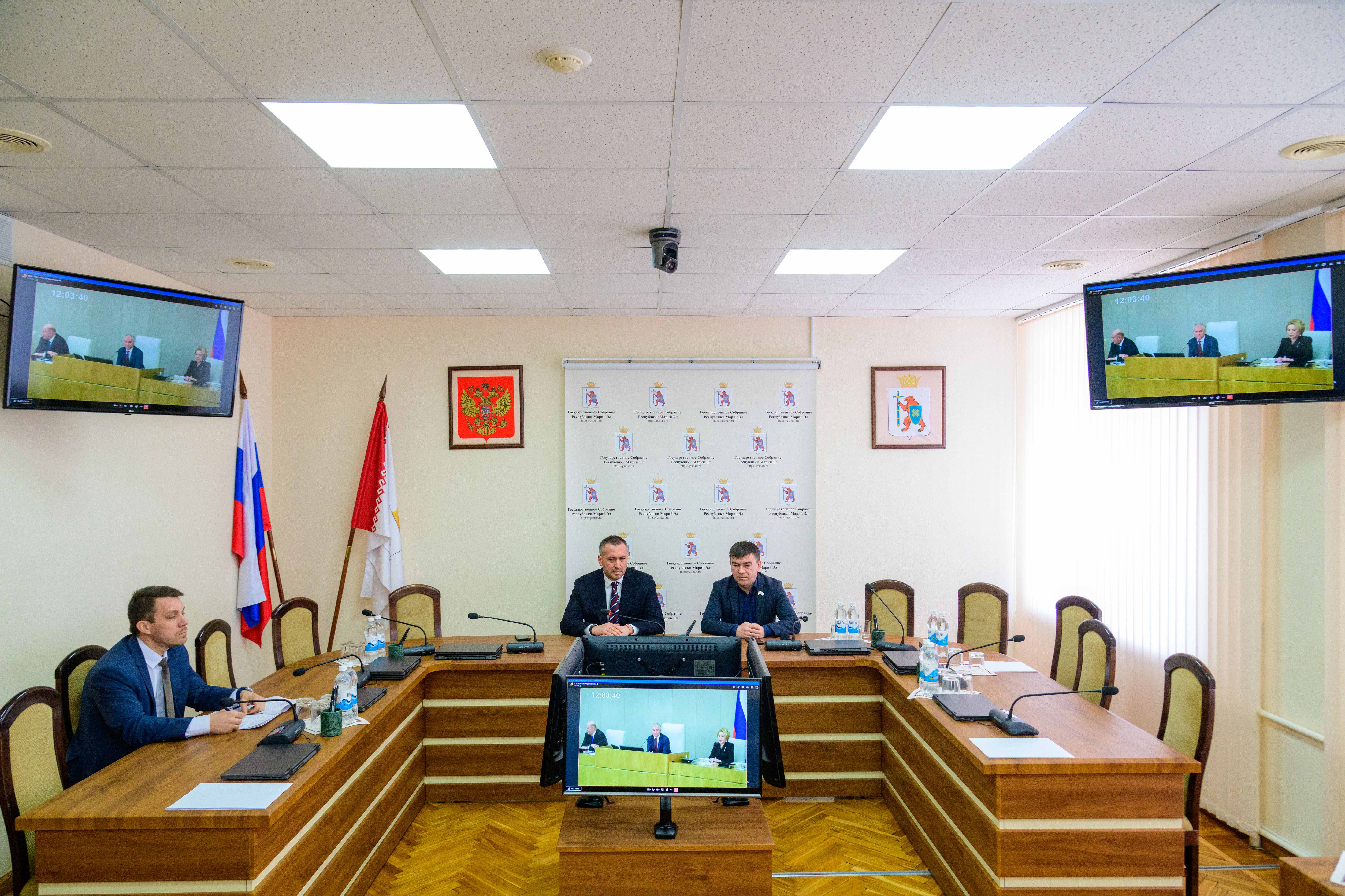Первый заместитель председателя правительства республики Дмитрий Троицкий и заместитель председателя Госсобрания, участник проекта «Герои Марий Эл. Талешке-влак» Александр Смирнов в формате видео-конференц-связи приняли участие в заседании Государственной Думы.