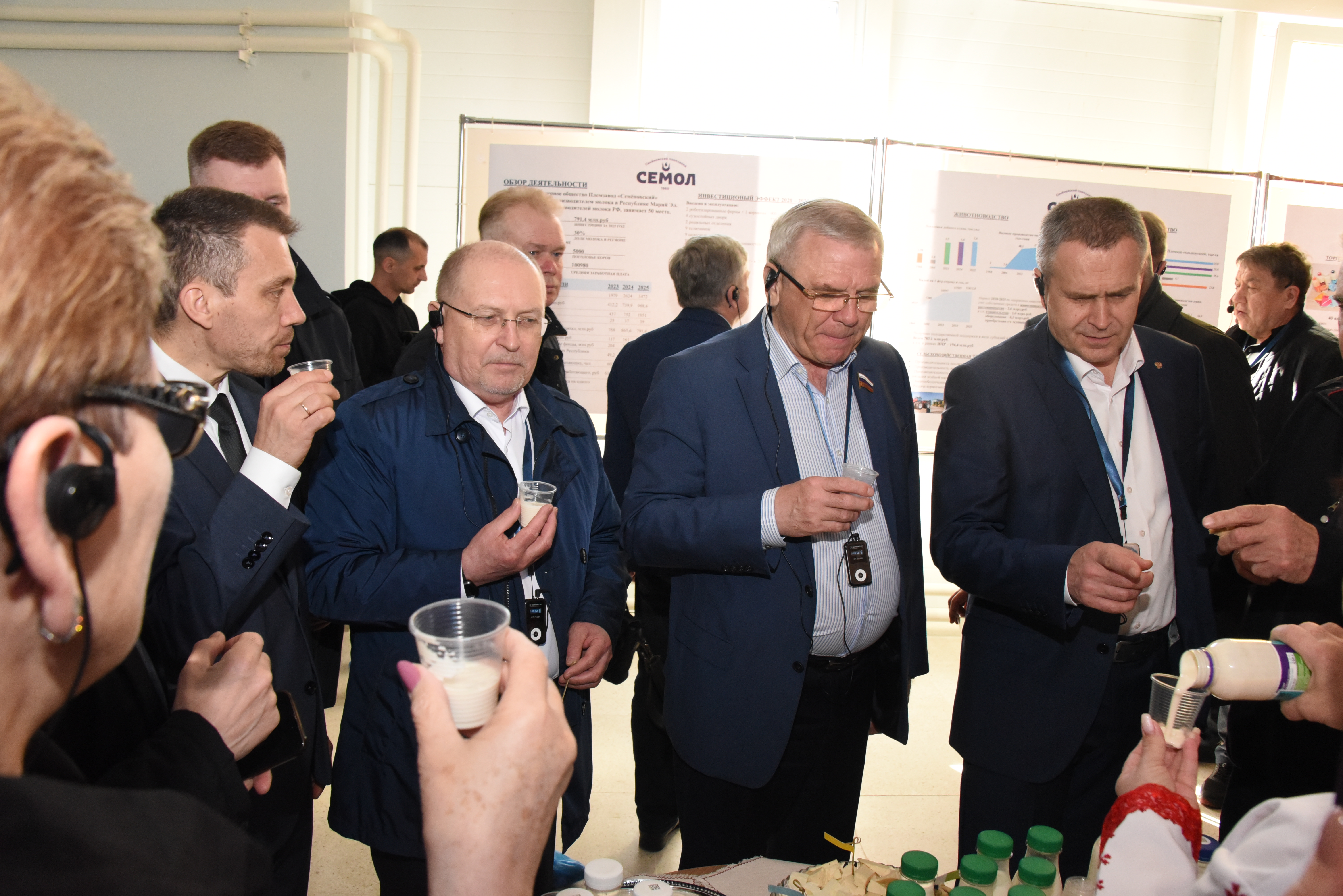 Следующим объектом посещения стала кумысная ферма ЗАО Племзавод «Семёновский», где гостей встретил генеральный директор Александр Козырев. Племзавод, образованный в 1960 году, сегодня является крупнейшим производителем молока в Марий Эл и племенным заводом по разведению крупного рогатого скота голштинской породы, а также лошадей русской и литовской тяжеловозных пород. На предприятии внедрены цифровые системы управления стадом и кормления.