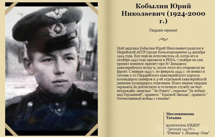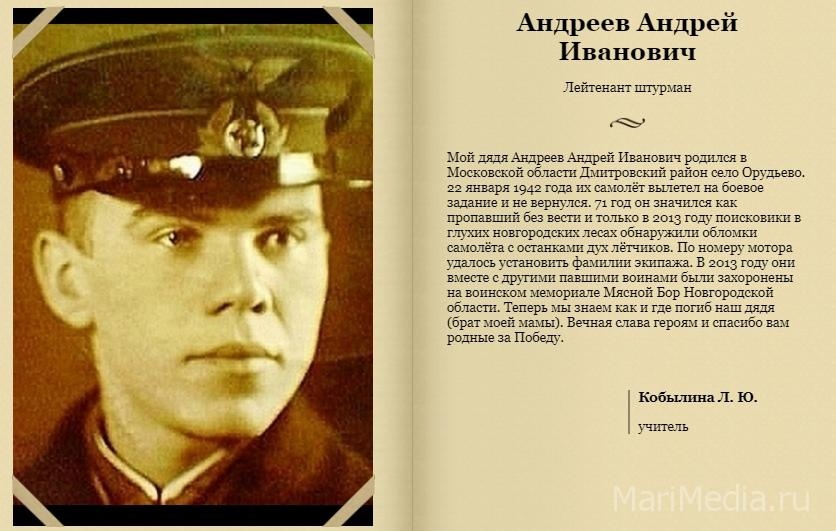 Проект «Поколение героев» на сайте «МариМедиа» стартовал 5 лет назад. Каждый год он продолжает пополняться фамилиями героев, которые сражались в Великой Отечественной войне. В год 75-ой годовщины Великой Победы советского народа над фашистскими захватчиками мы вспоминаем тех, кто вернулись победителями с той страшной войны, и тех — кто остался на полях сражений.