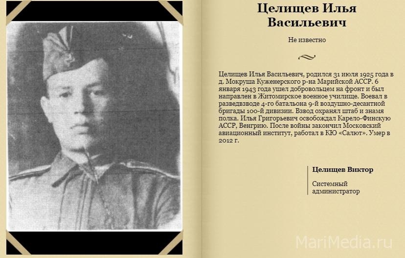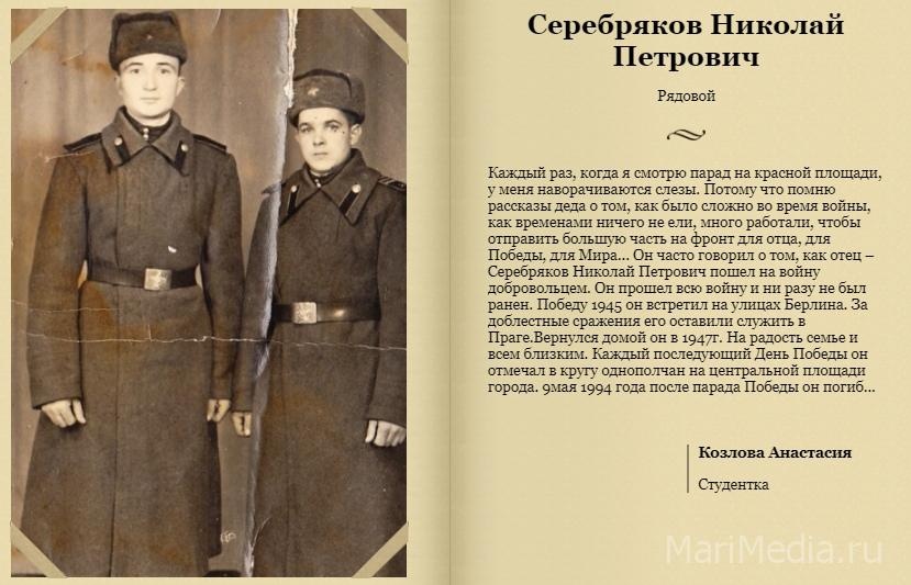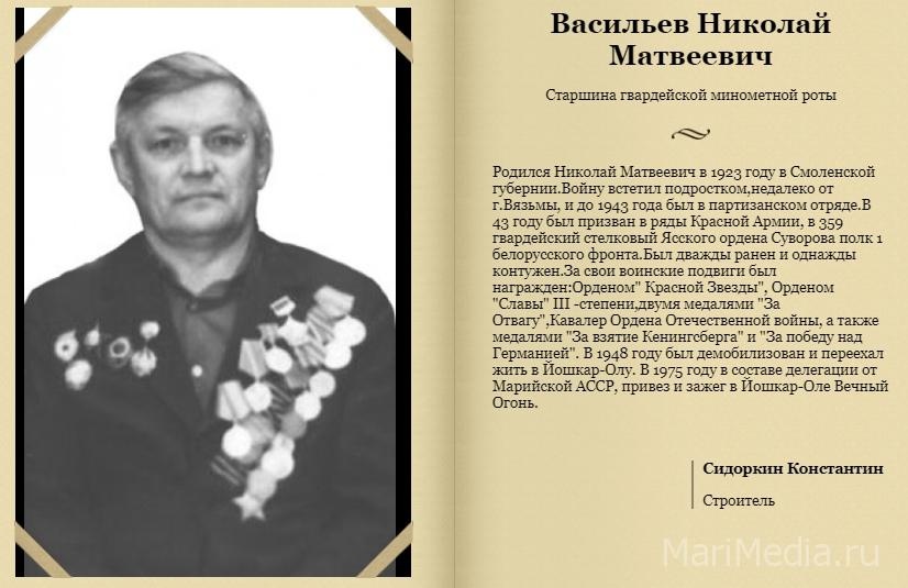 С 1 по 9 мая в группе «МариМедиа – новости Йошкар-Олы и Марий Эл» пройдёт «Бессмертный полк Поколения героев». Проект «Поколение героев» на сайте «МариМедиа» стартовал 5 лет назад. Каждый год он продолжает пополняться фамилиями героев, которые сражались в Великой Отечественной войне.