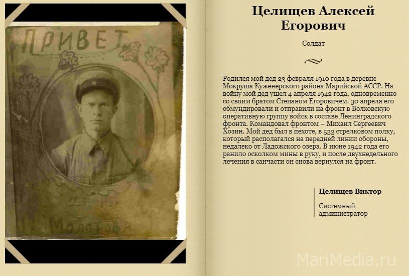 С 1 по 9 мая в группе «МариМедиа — новости Йошкар-Олы и Марий Эл» пройдёт «Бессмертный полк Поколения героев». Проект «Поколение героев» на сайте «МариМедиа» стартовал 5 лет назад. Каждый год он продолжает пополняться фамилиями героев, которые сражались в Великой Отечественной войне.