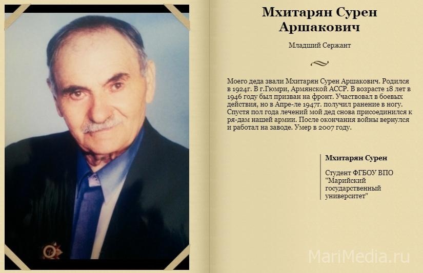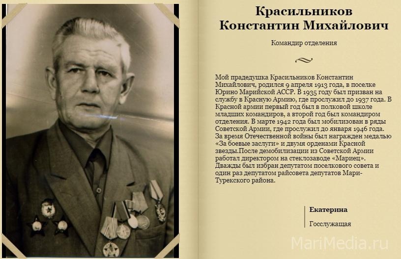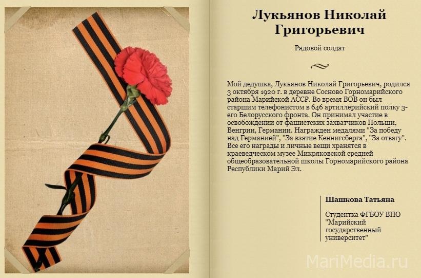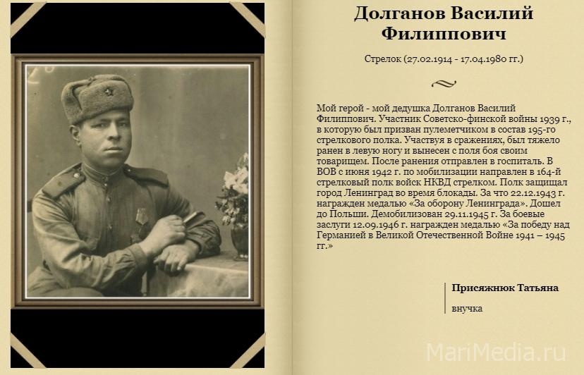 Проект «Поколение героев» на сайте «МариМедиа» стартовал 5 лет назад. Каждый год он продолжает пополняться фамилиями героев, которые сражались в Великой Отечественной войне. В год 75-ой годовщины Великой Победы советского народа над фашистскими захватчиками мы вспоминаем тех, кто вернулись победителями с той страшной войны, и тех, кто остался на полях сражений.