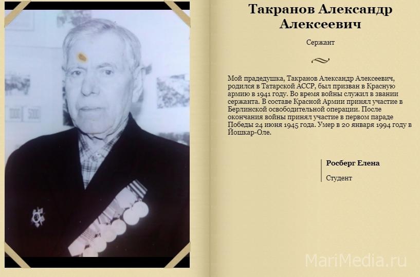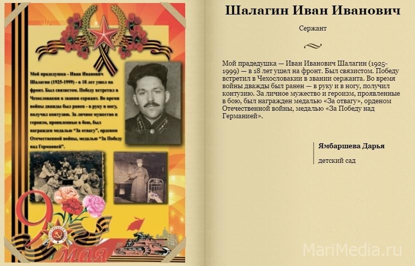 1 мая на сайте стартовал «Бессмертный полк Поколения героев». Это фотоотчёт уникального проекта на www.marimedia.ru. С 1 по 9 число на страницах портала пройдут фронтовики, участники Великой Отечественной войны.