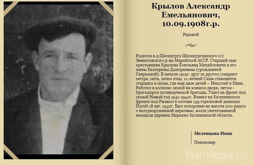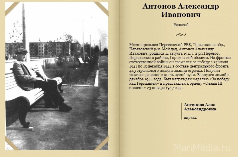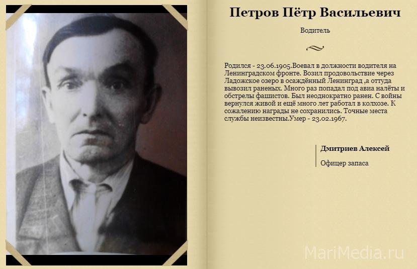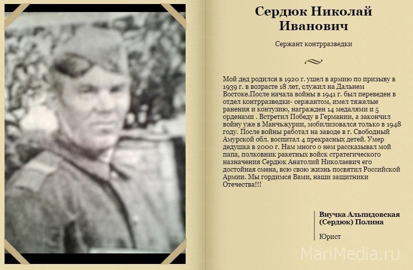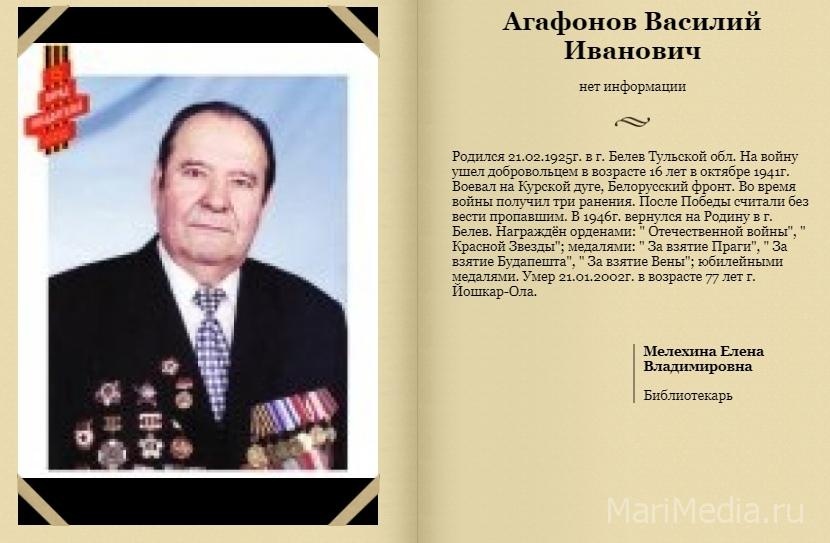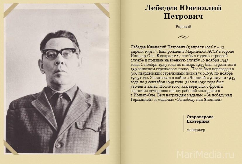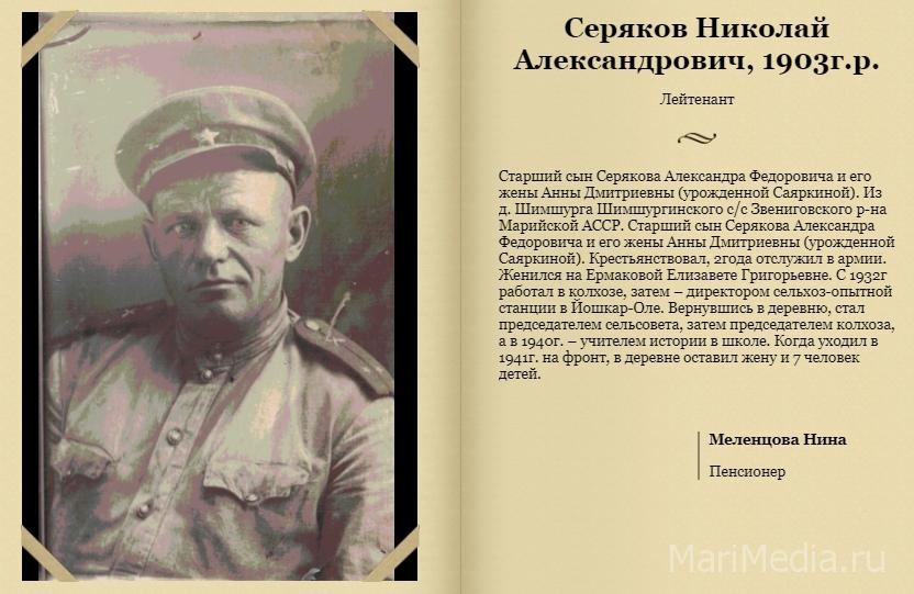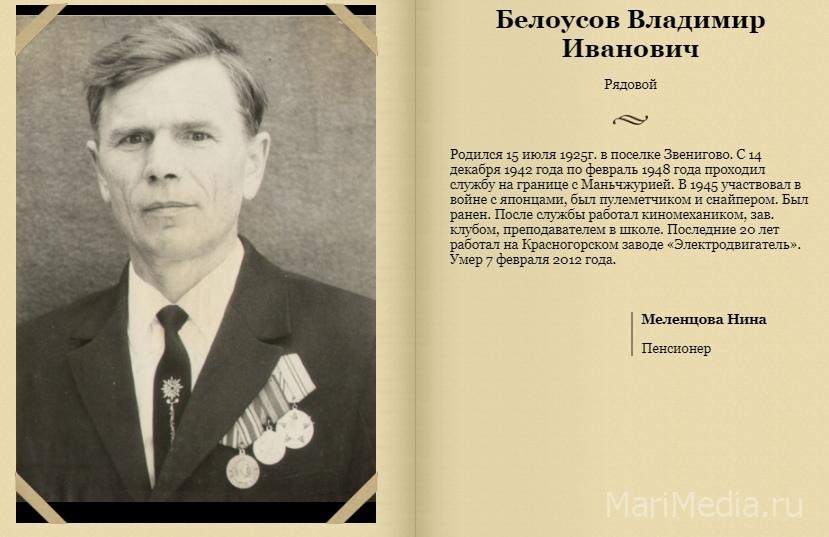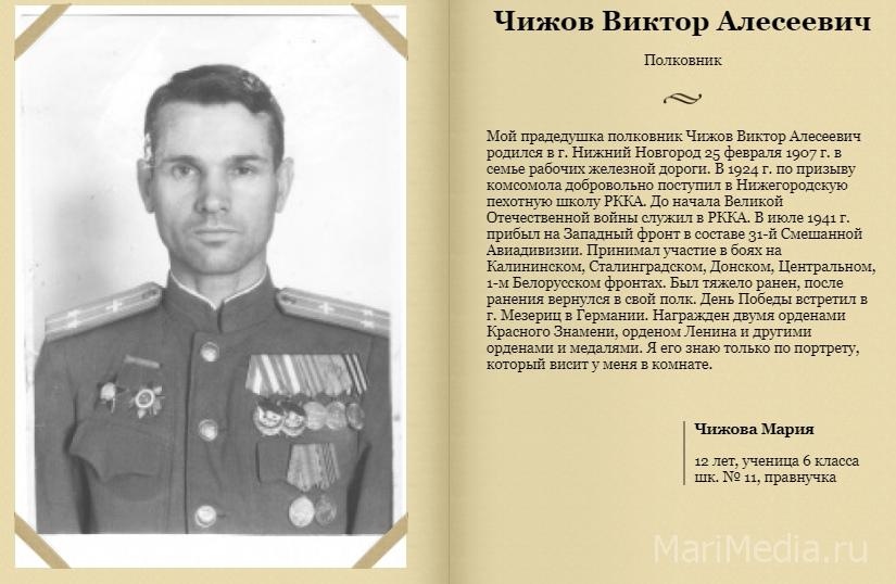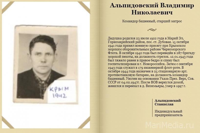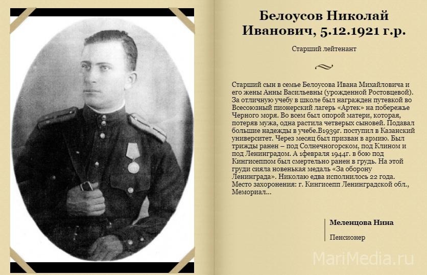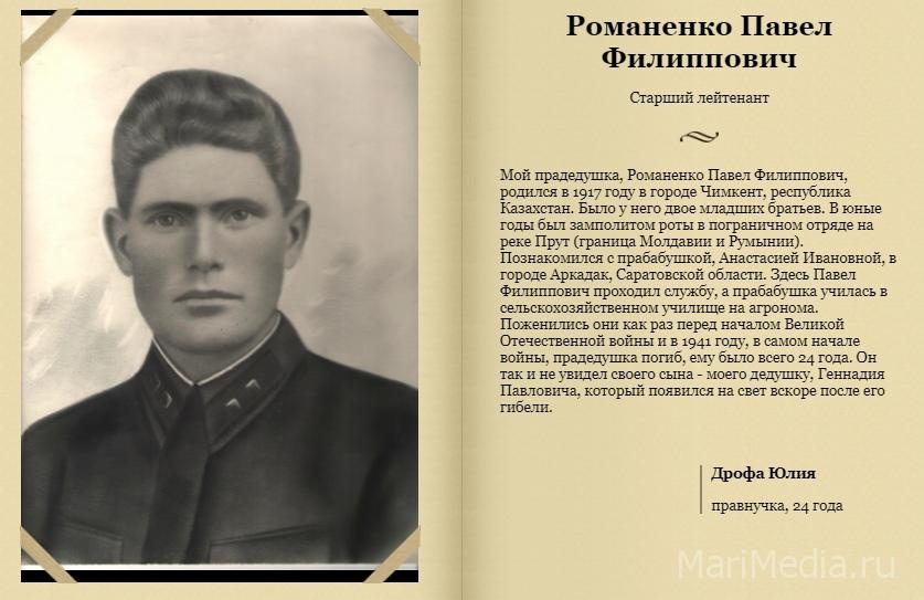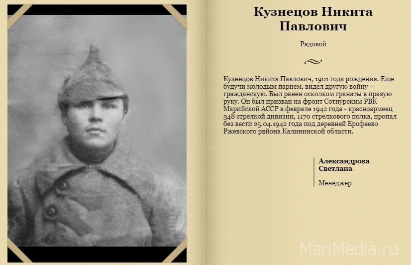 5 лет назад на сайте «МариМедиа» стартовал проект «Поколение героев». Каждый год он продолжает пополняться фамилиями героев, которые сражались в Великой Отечественной войне. В год 75-ой годовщины Великой Победы советского народа над фашистскими захватчиками мы вспоминаем тех, кто вернулись победителями с той страшной войны, и тех, кто остался на полях сражений.